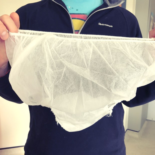 Ah – these. Yeah. This is the paper pants they make you wear during surgery. I had surgery on my jaw… so I have no idea why I required paper underwear. 🤔