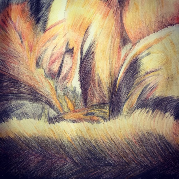 A fox I drew using a long pencil stroke to create the fur. Pencil on sketch paper.