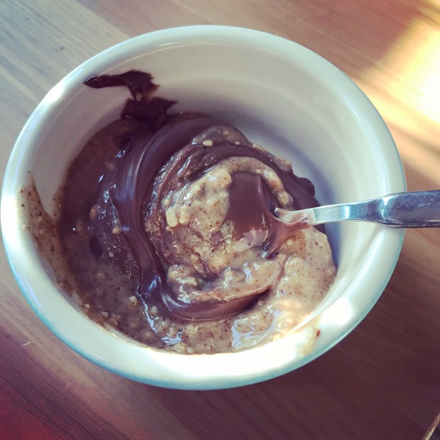 One evening I got fed up with my face and didn’t want to eat anything. So I mixed Nutella and peanut butter together in a tiny bowl 👌🏻