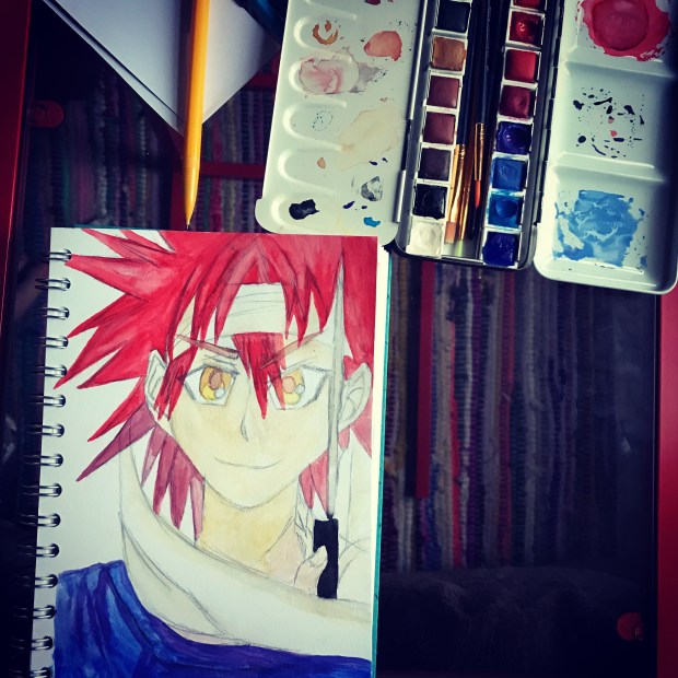 Anyway, this is my attempt at a portrait of the many characters, Yukihira Soma. – painted with watercolours on watercolour paper. Yukihira Soma.