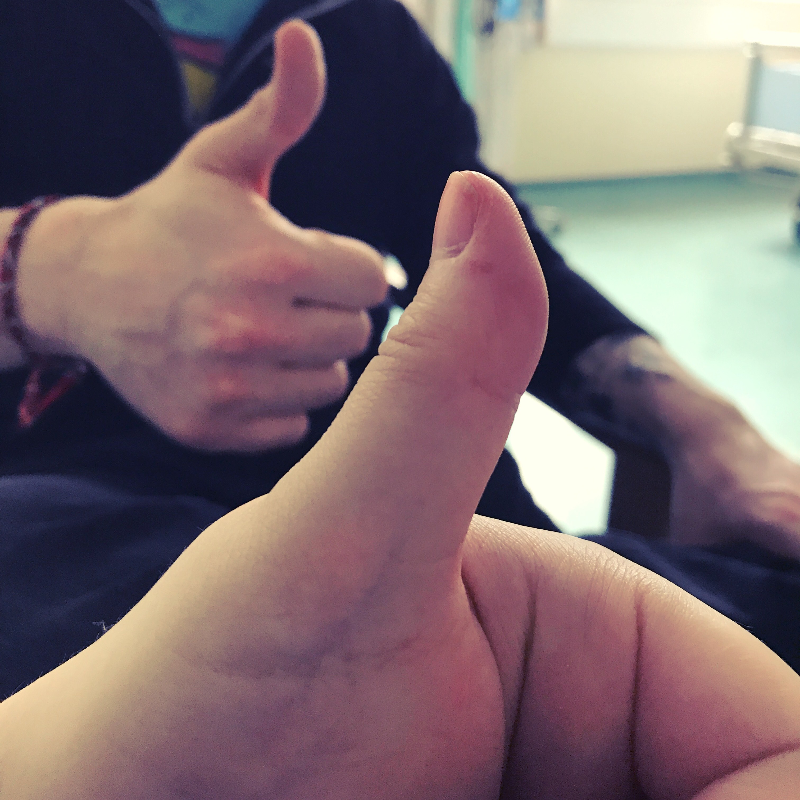 A very tired, swollen and sore post-op thumbs up. We did it!